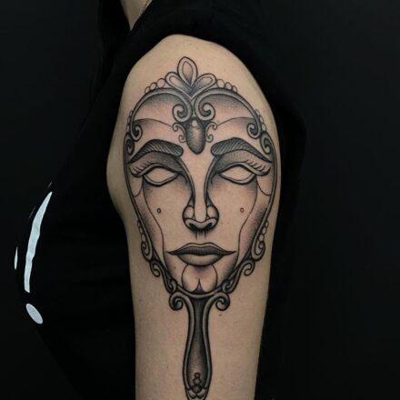 Tetování z filmů a pohádek Papírový dům, maska na hřbetu ruky