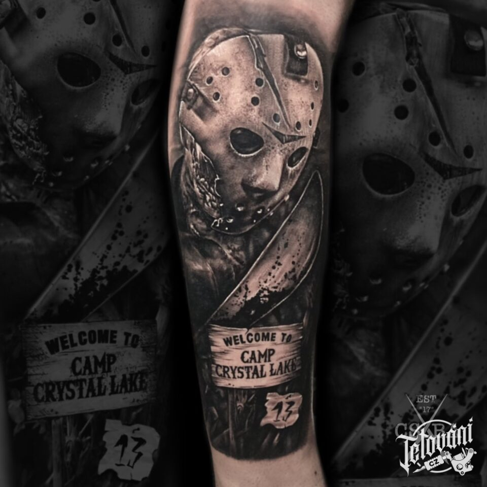 Tetování z filmů a pohádek Pátek 13, masky na předloktí