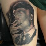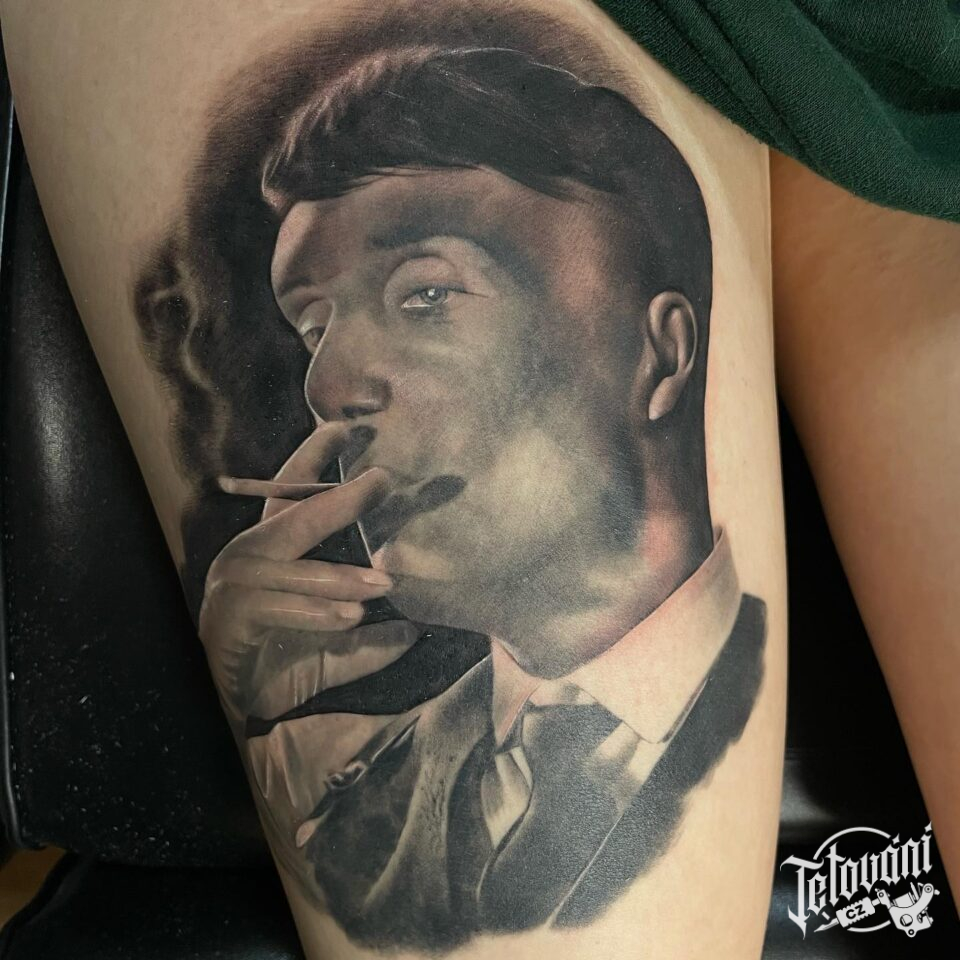 Tetování z filmů a pohádek Peaky and Blinders, portrét na stehno
