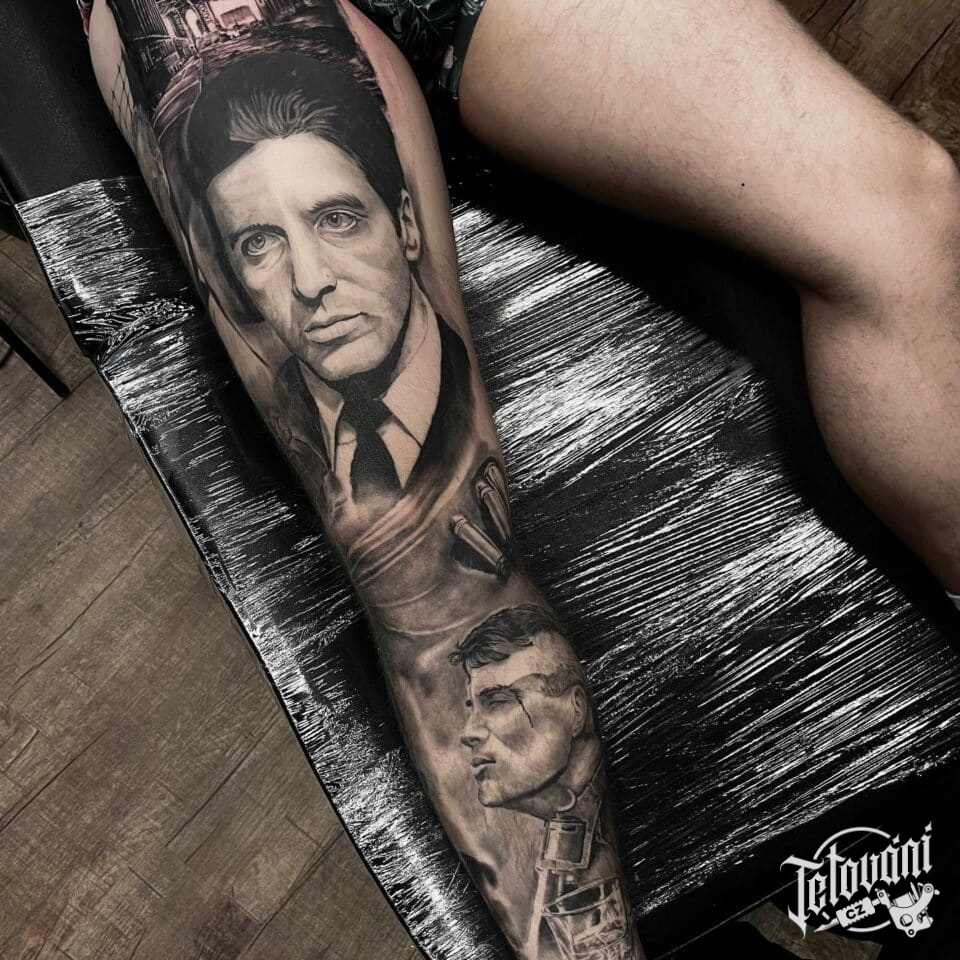 Tetování z filmů a pohádek Peaky and Blinders, portréty na nohu