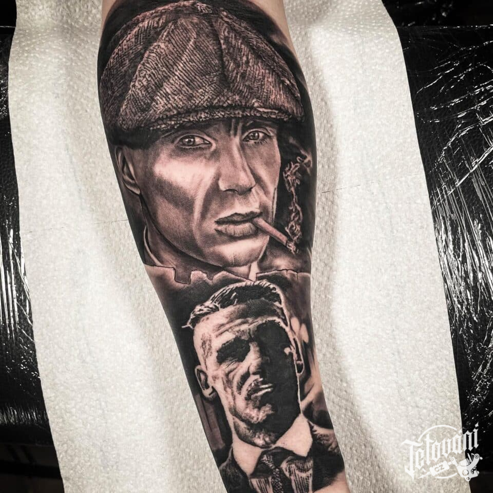 Tetování z filmů a pohádek Peaky Blinders – Thomas Shelby, portrét, osobnost na předloktí