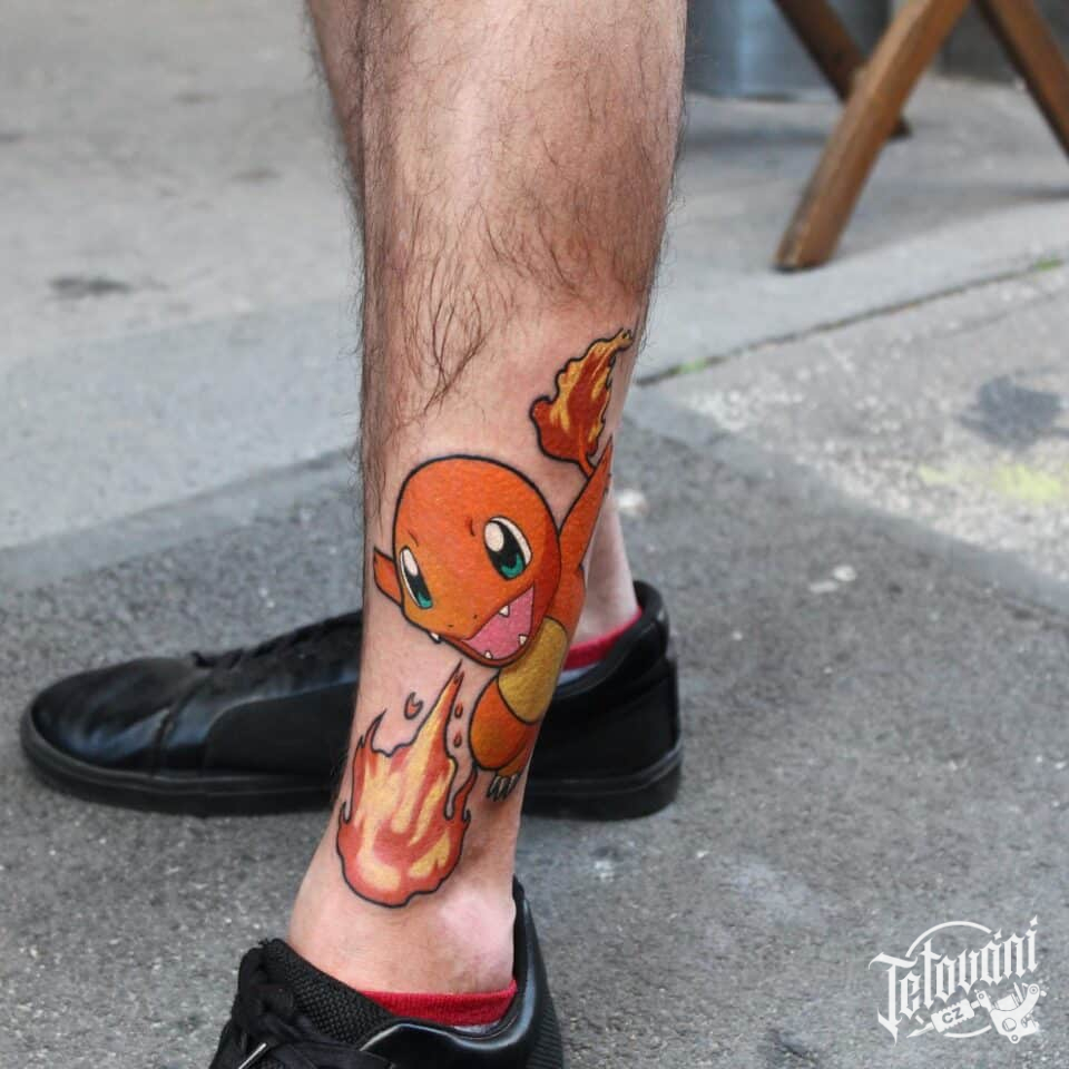 Tetování z filmů a pohádek Pokemón, postavička na holeň