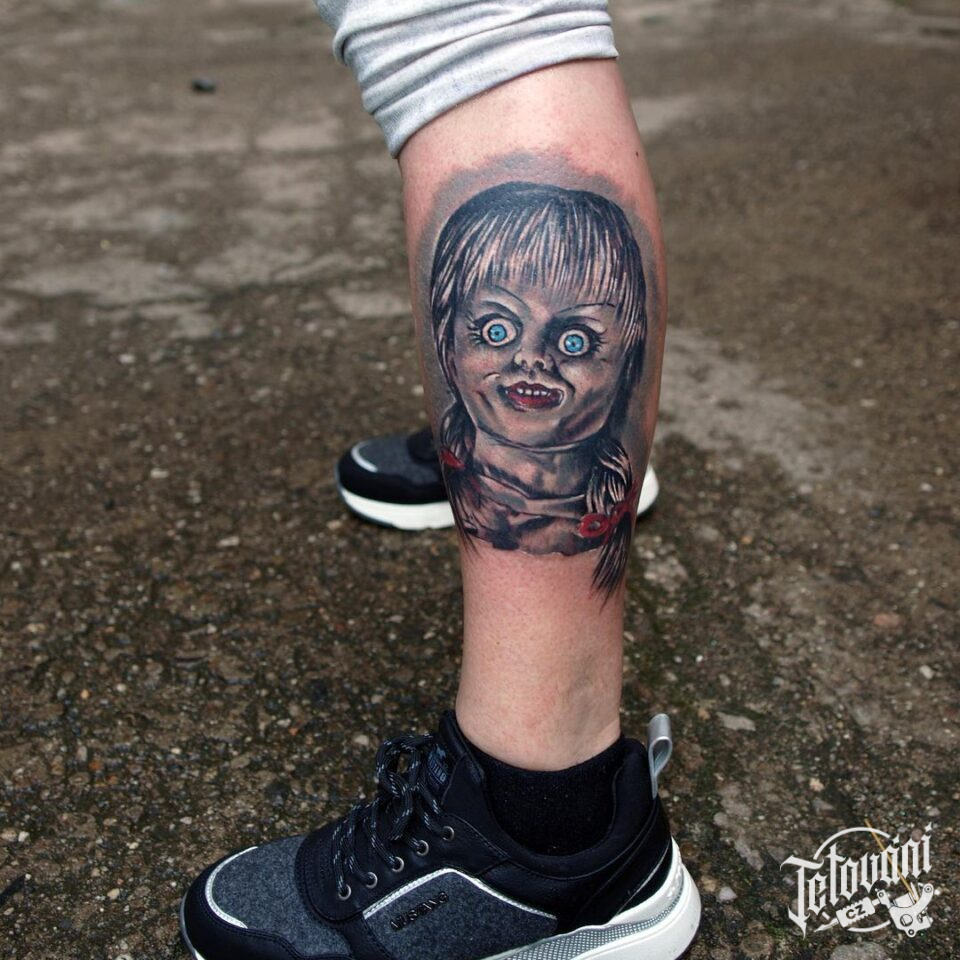 Tetování z filmů a pohádek, portrét Annabelle na lýtku