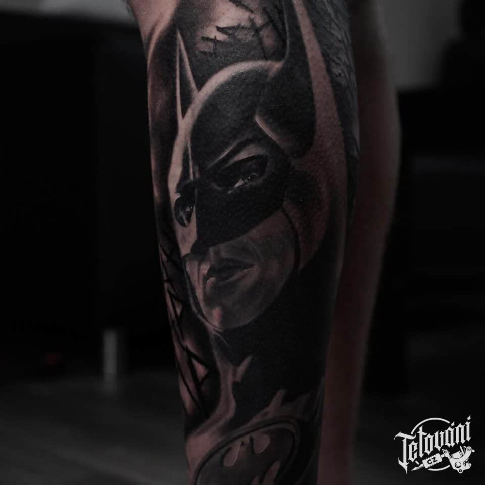 Tetování z filmů a pohádek portrét Batman na lýtko