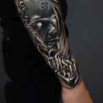 Tetování z filmů a pohádek, portrét futuristic Guardian na předloktí