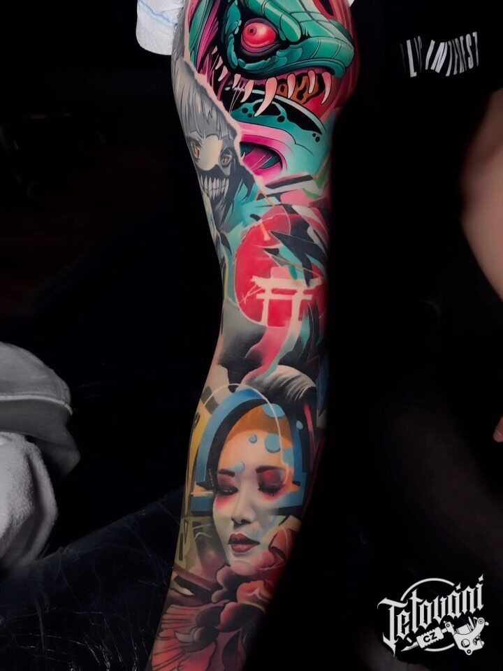 Tetování z filmů a pohádek, portrét Gejši, rukáv