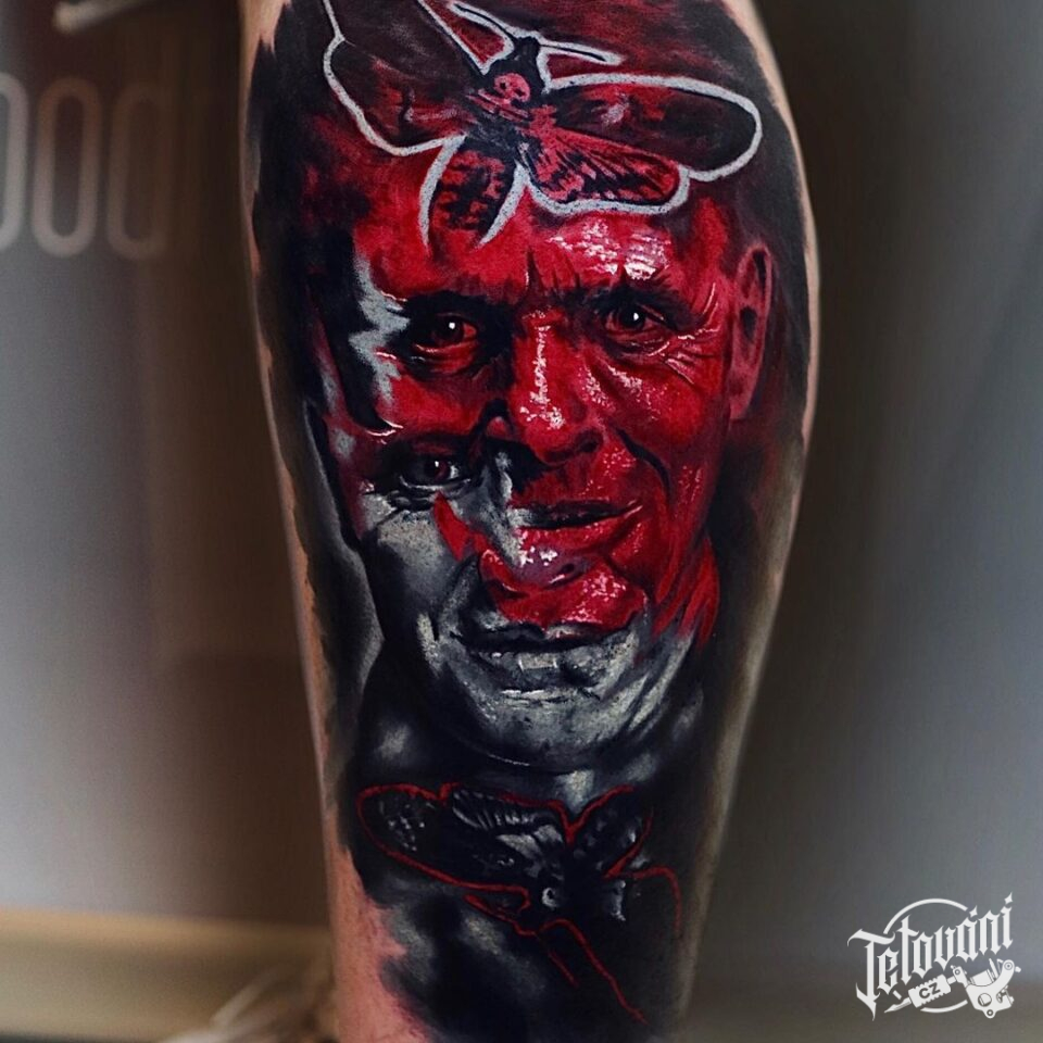 Tetování z filmů a pohádek, portrét Hannibal Lecter na lýtku