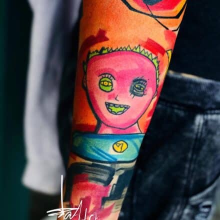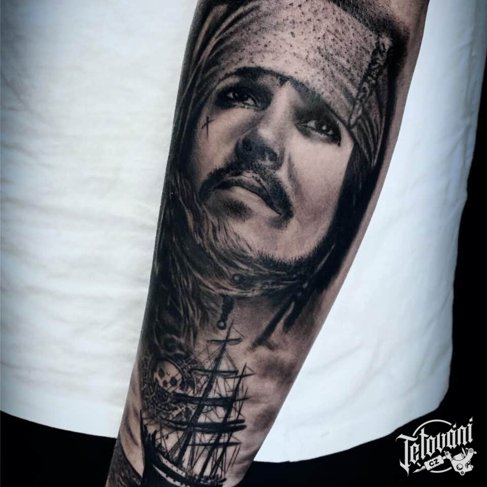Tetování z filmů a pohádek, portrét, Jack Sparrow na předloktí