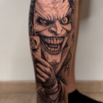 Tetování z filmů a pohádek, portrét Joker na lýtku