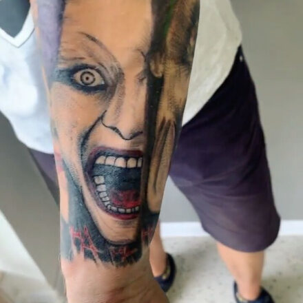 Tetování z filmů a pohádek portrét Joker na paži
