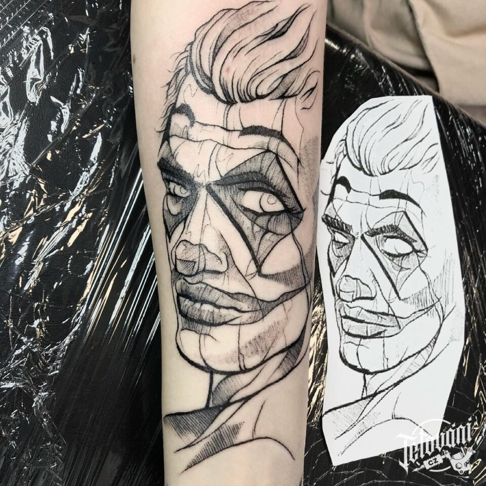 Tetování z filmů a pohádek, portrét, Joker na předloktí