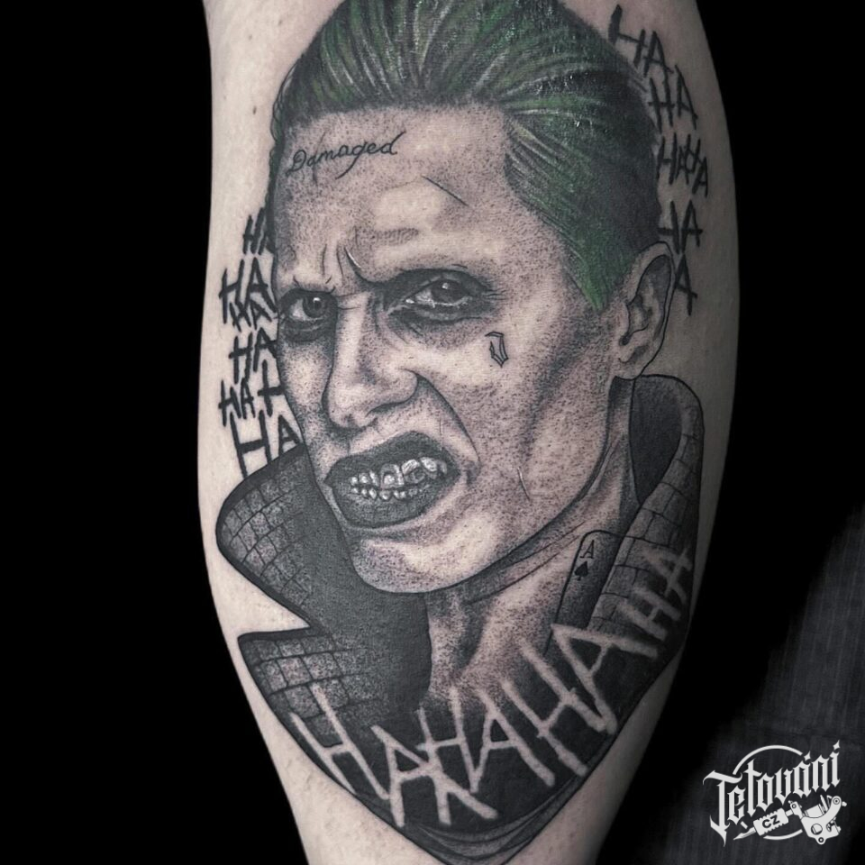 Tetování z filmů a pohádek, portrét Jokera na lýtku