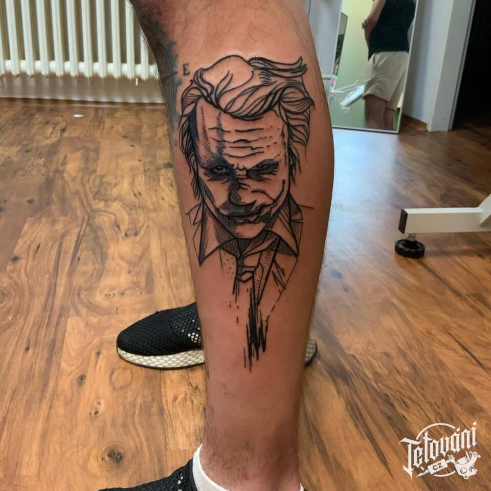 Tetování z filmů a pohádek, portrét Jokera na noze