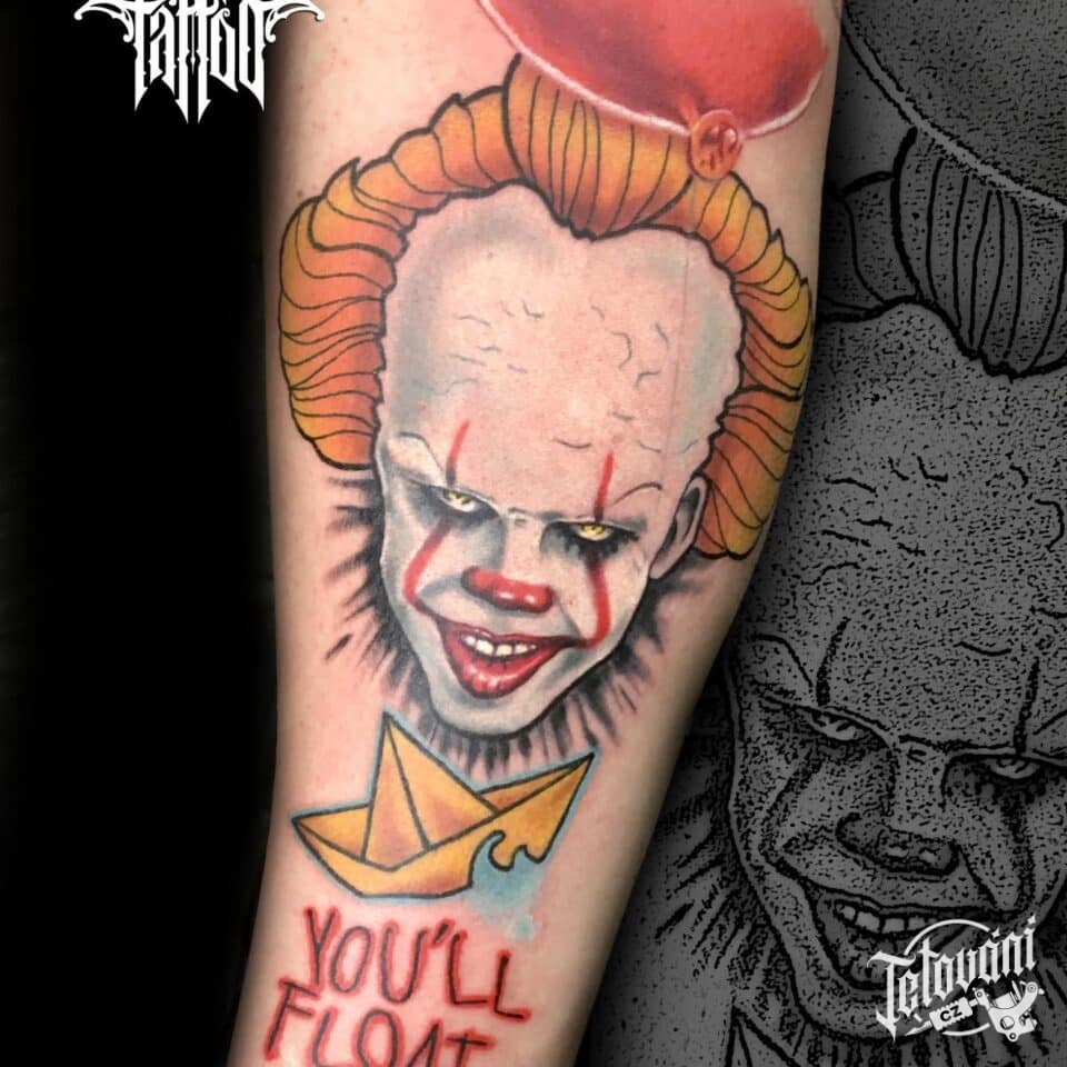 Tetování z filmů a pohádek portrét klauna na předloktí