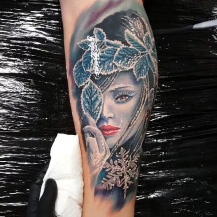 Tetování z filmů a pohádek, portrét Kmotra na lýtku