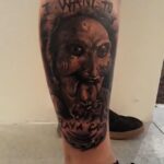 Tetování z filmů a pohádek, portrét a maska na lýtku