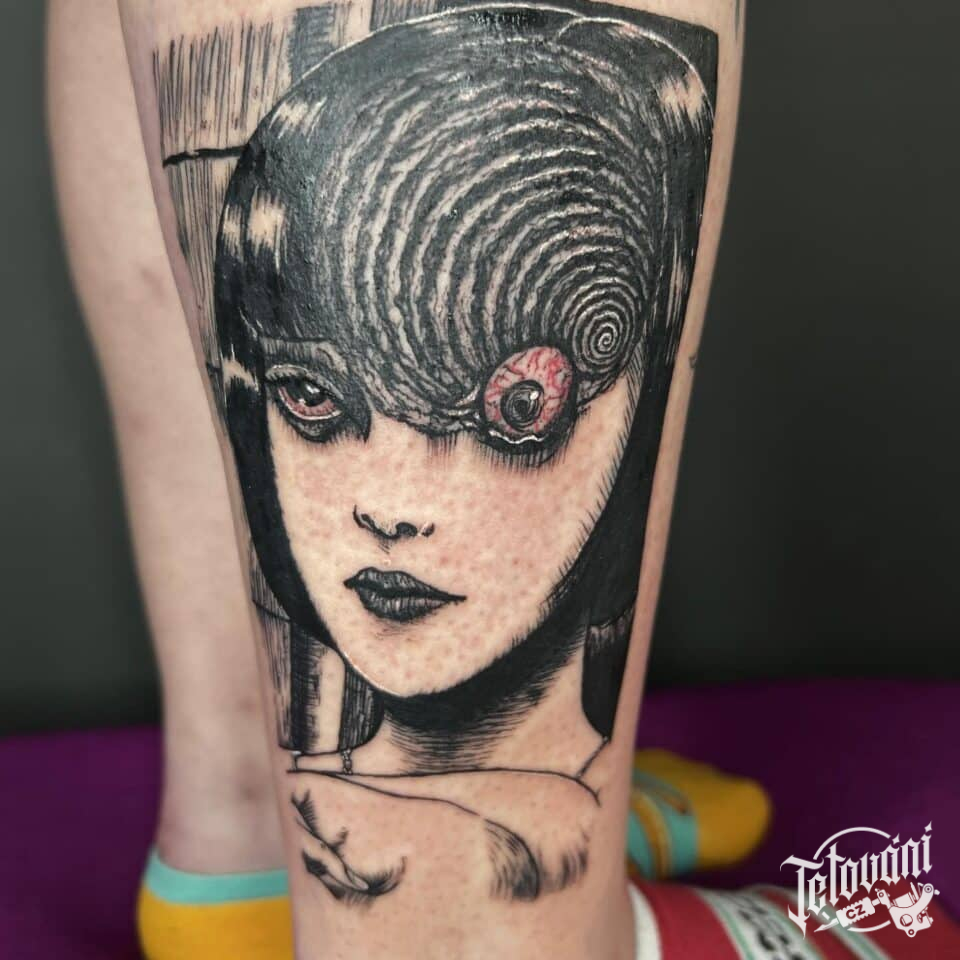 Tetování z filmů a pohádek, portrét na lýtku