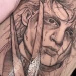 Tetování z filmů a pohádek, portrét osobnosti na stehnu
