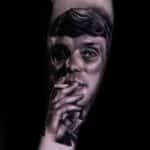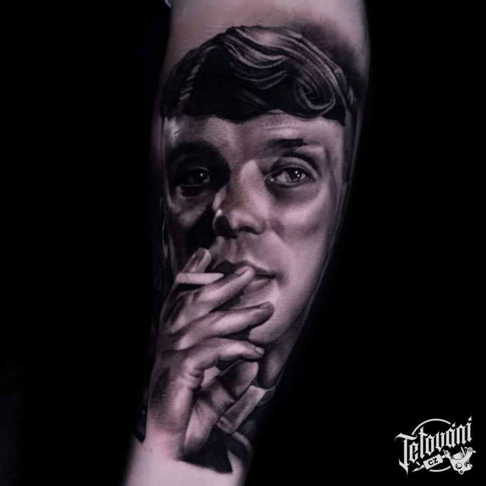 Tetování z filmů a pohádek, portrét Thomase Shelbyho na předloktí
