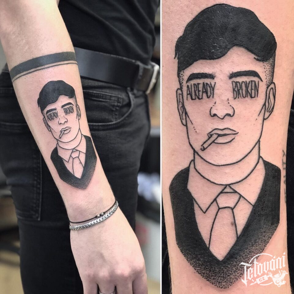 Tetování z filmů a pohádek, portrét Tommy Shelby na předloktí