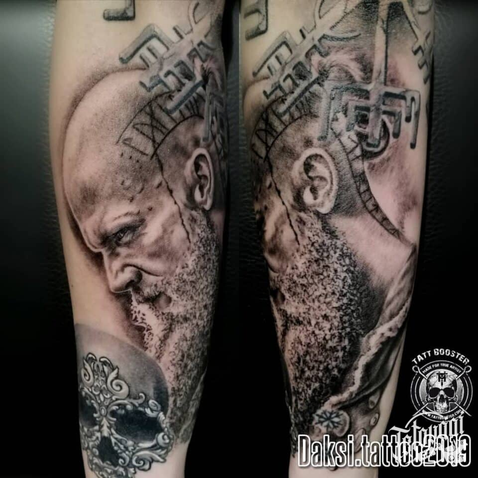 Tetování z filmů a pohádek, portrét, Viking Floki na předloktí