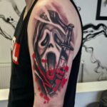Tetování z filmů a pohádek portrét Vřískot s nožem, krev, maska na rameno