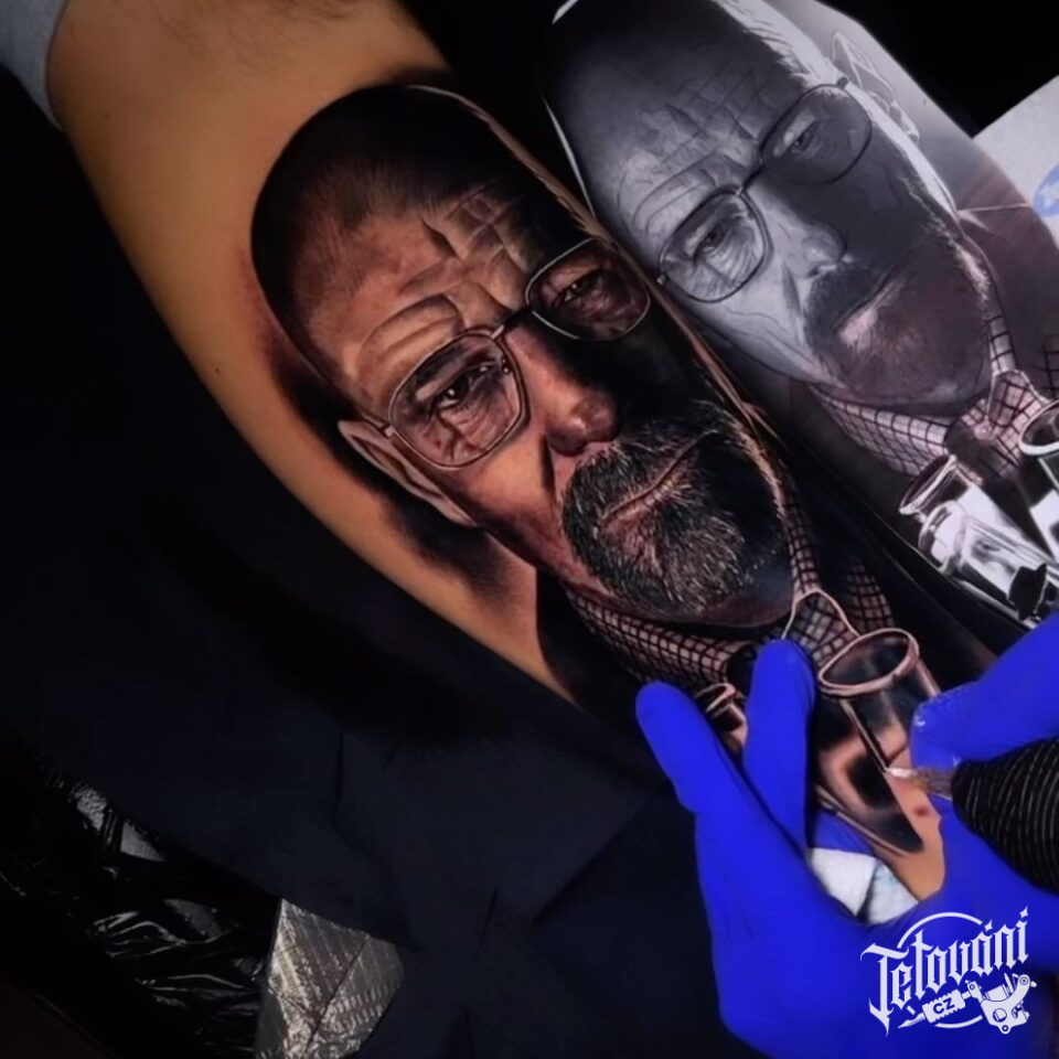 Tetování z filmů a pohádek, portrét, Walter White, na holeň