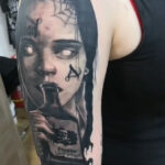 Tetování z filmů a pohádek, portrét Wednesday na předloktí