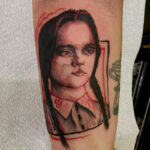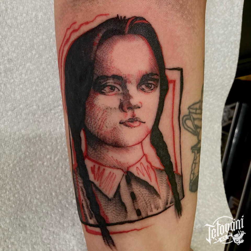 Tetování z filmů a pohádek, portrét Wednesday na ruce