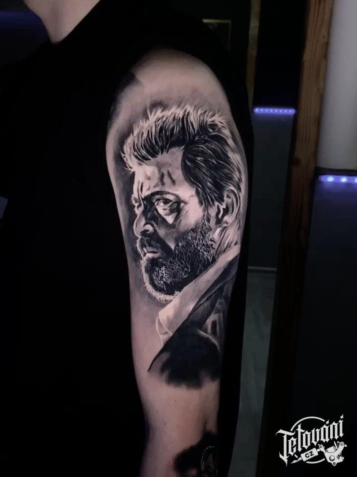 Tetování z filmů a pohádek portrét Wolverine na rameni