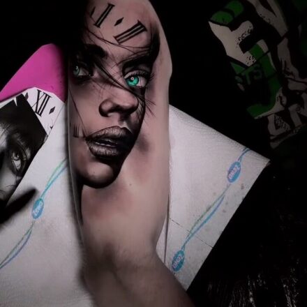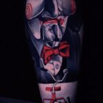 Tetování z filmů a pohádek portrét ze SAW na lýtku