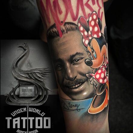 Tetování z filmů a pohádek, portrét ženy na předloktí