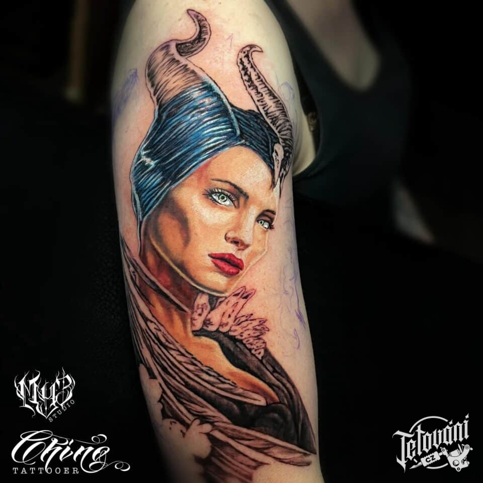Tetování z filmů a pohádek, portrét, Zloba na paži