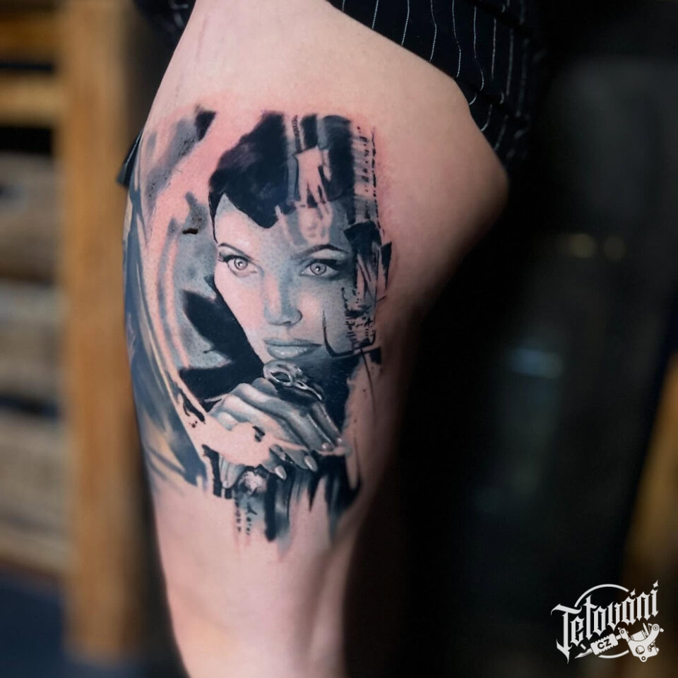 Tetování z filmů a pohádek, portrét Zloby na boku stehna