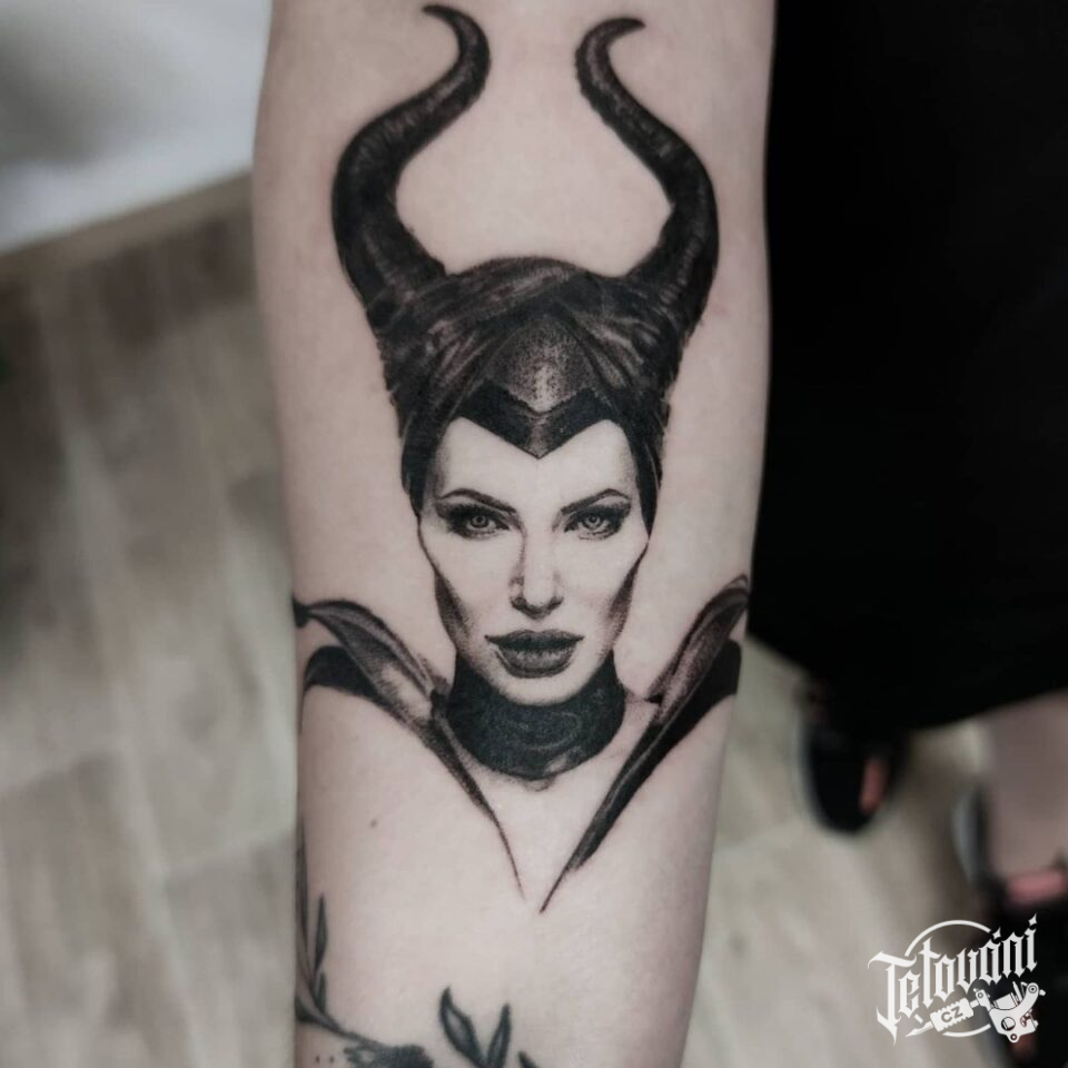 Tetování z filmů a pohádek, portrét Zloby na předloktí