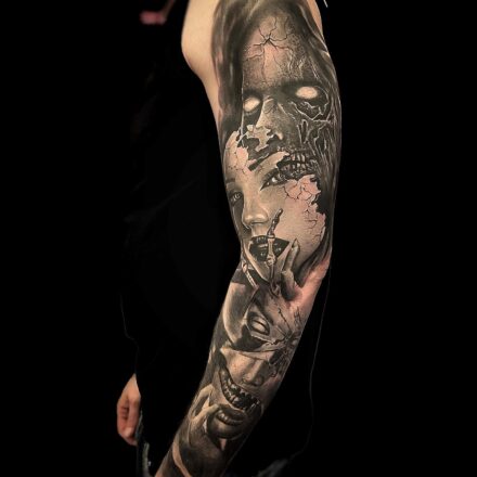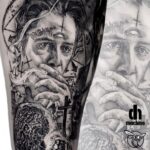 Tetování z filmů a pohádek, portrét, znamení zla na stehnu