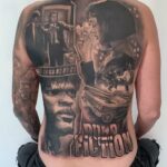 Tetování z filmů a pohádek, portréty a nápis na zádech