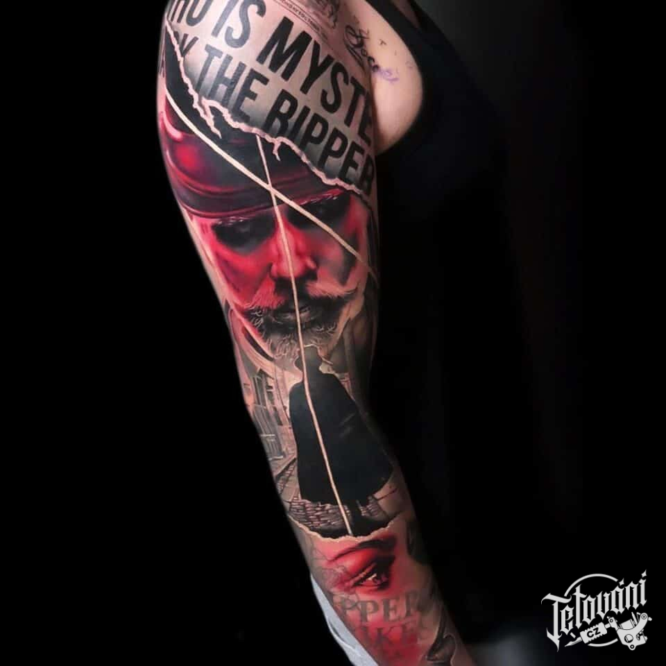 Tetování z filmů a pohádek, portréty, Jack Rozparovač, rukáv