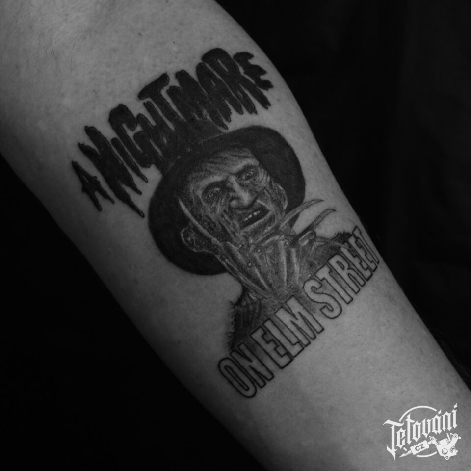 Tetování z filmů a pohádek postava Freddy Krueger na předloktí