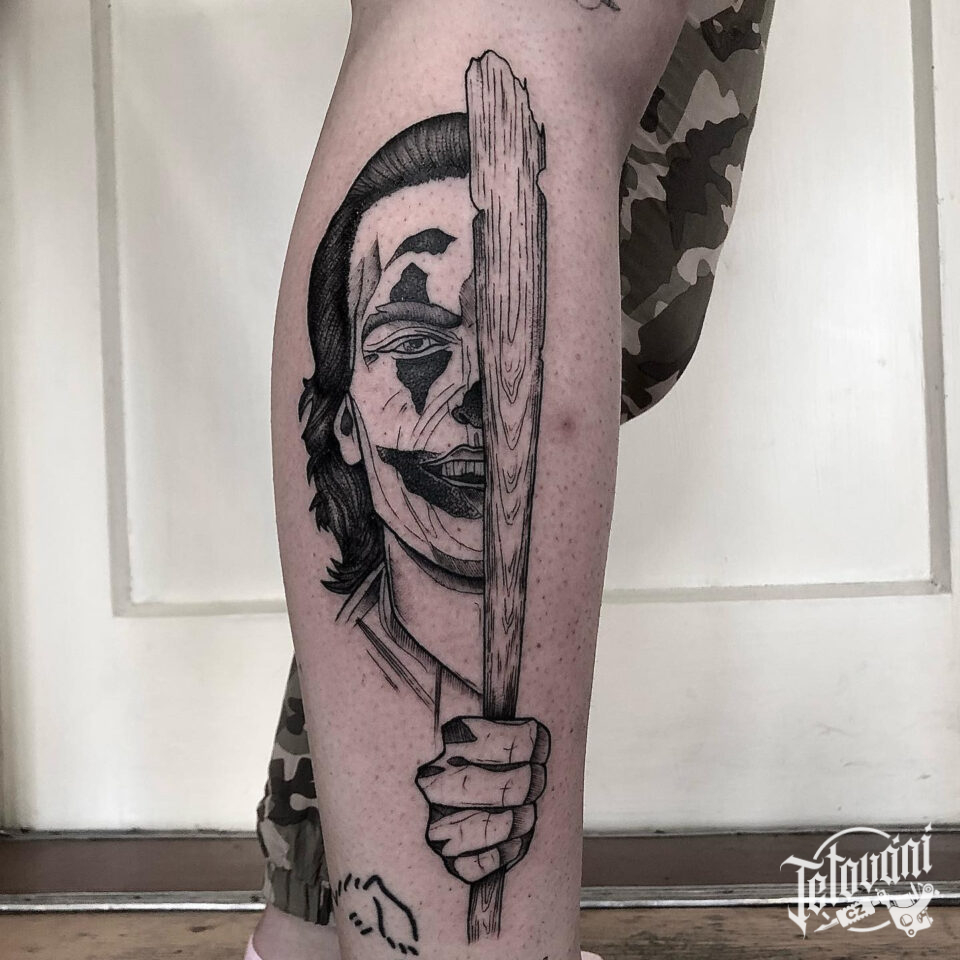 Tetování z filmů a pohádek, postava Joker na lýtko