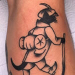 Tetování z filmů a pohádek, postava kocour Mikeš na holeň