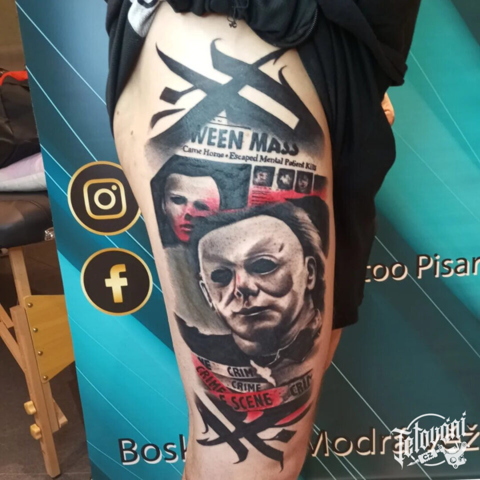 Tetování postava Michael Myers, z filmů a pohádek Halloween na stehno