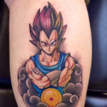 Tetování postava Vegeta, z filmů a pohádek Dragon Ball na lýtko