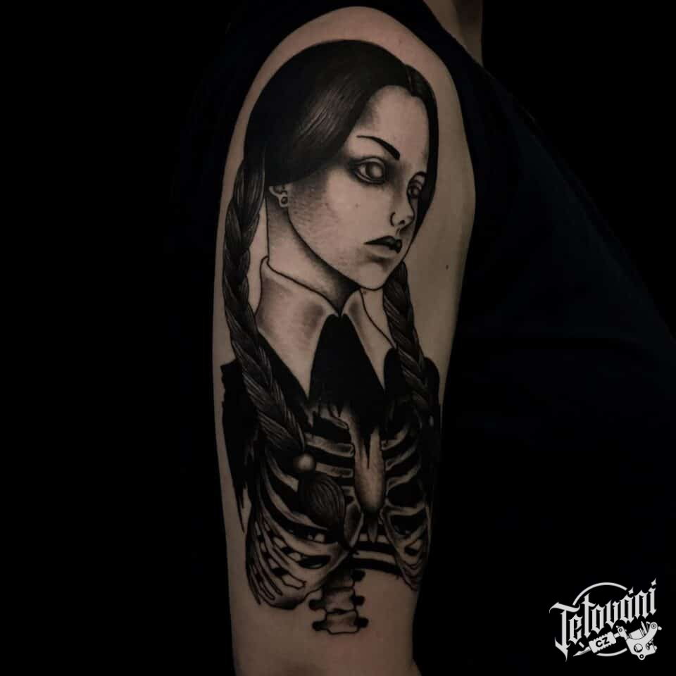 Tetování z filmů a pohádek postava Wednesday na rameno