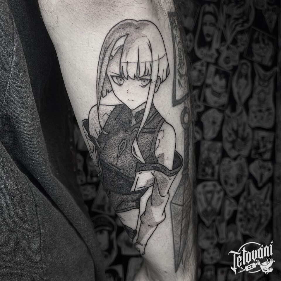 Tetování z filmů a pohádek, postavička anime, žena na předloktí