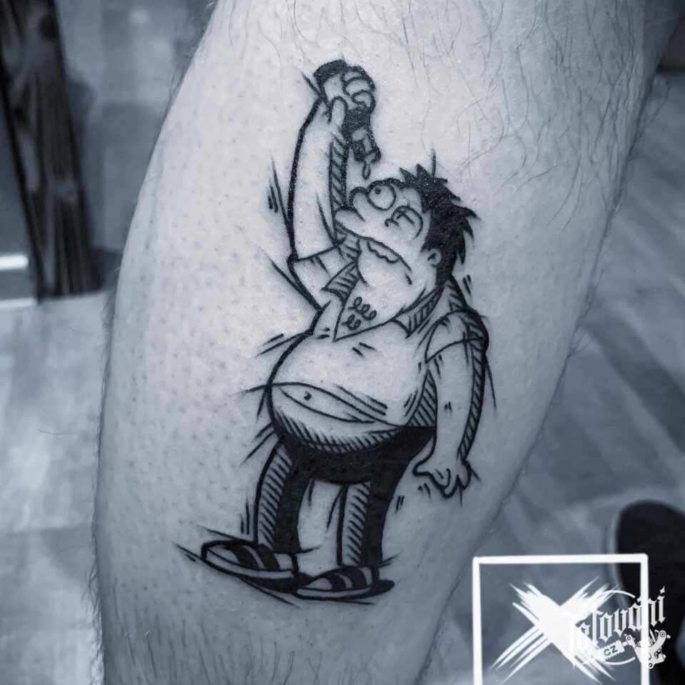 Tetování z filmů a pohádek, postavička, Barney na lýtku