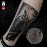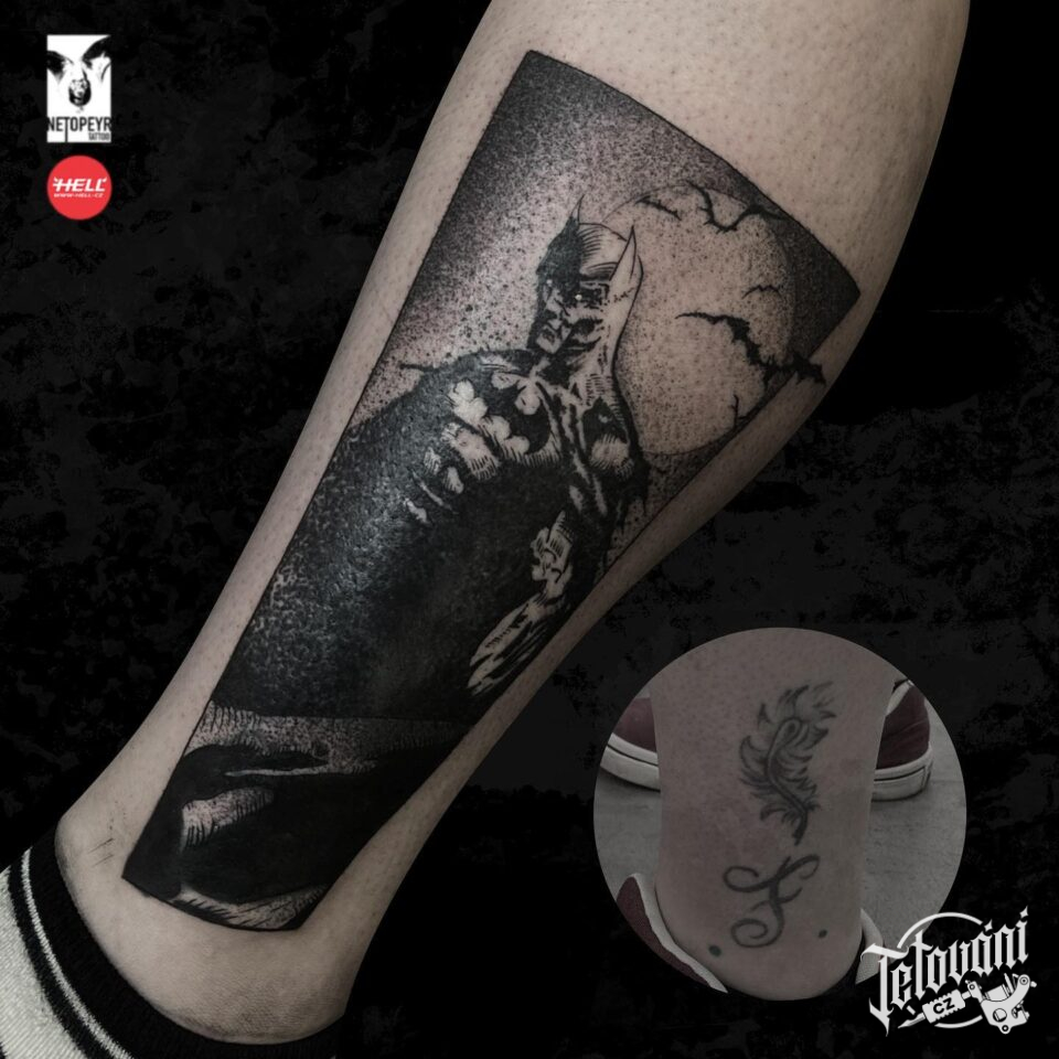 Tetování z filmů a pohádek postavička Batman, tvary na lýtko