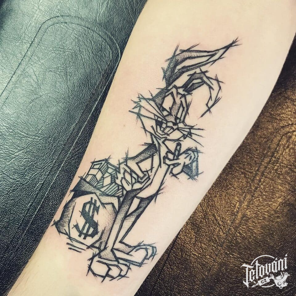 Tetování z filmů a pohádek, postavička, Bugs Bunny na předloktí
