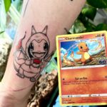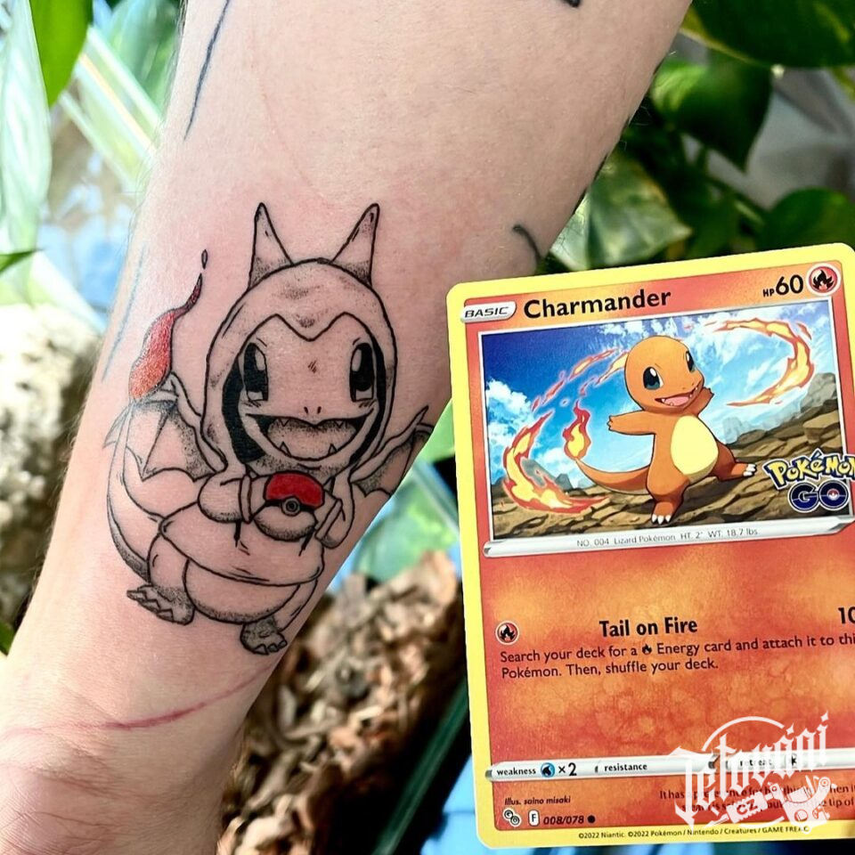 Tetování z filmů a pohádek postavička Charmander z pokémonů na předloktí