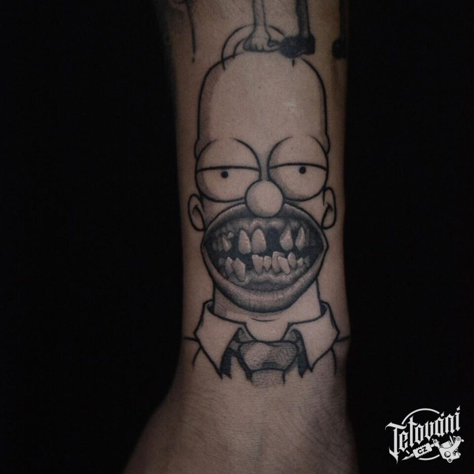 Tetování z filmů a pohádek, postavička Homer na předloktí